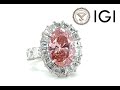 Fancy Vivid Pink Oval Diamond Engagement Ring 13.50 Carat Halo IGI Lab Grown Platinum
