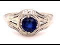 Vintage Sapphire Engagement Ring .50ct 18K White Gold Art Deco Antique